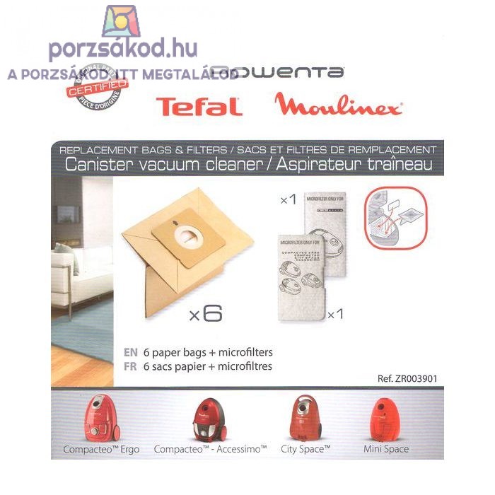 Papír porzsák, 6 darabos kiszerelésben GYÁRI + 2FILTER ROWENTA kompatibilis (R15GY)