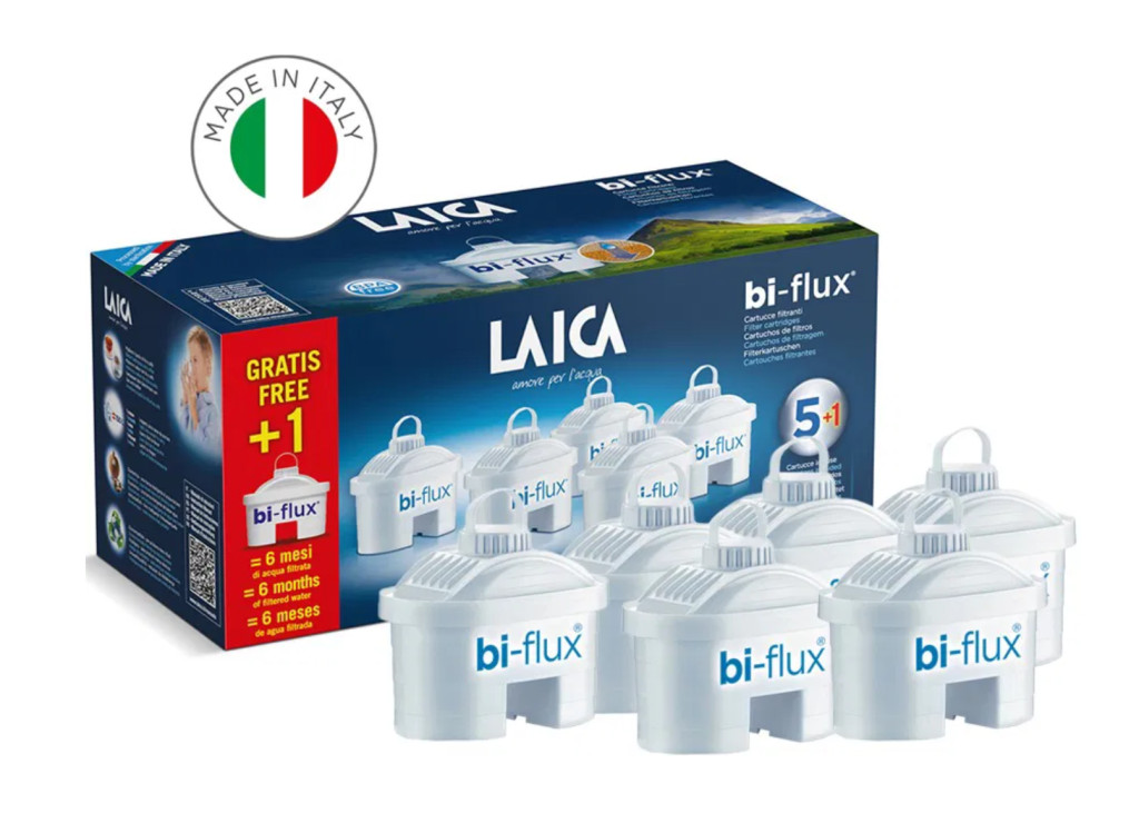A **Laica Bi-Flux univerzális szűrőbetét** különböző vízszűrő kancsókhoz illeszkedik, és ideális a víz minőségének javítására. Hatékonyan eltávolítja a klórt, a vízkövet, a nehézfémeket, valamint a peszticideket és herbicideket, amelyek a vízvezetékeken keresztül kerülhetnek a vízbe. A szűrőbetétnek köszönhetően tiszta, klórszag és mellékíz nélküli vizet élvezhetsz. A csomag hat szűrőbetétet tartalmaz, amelyek fél évnyi szűrésre vagy 900 liter vízre elegendőek. Egy szűrőbetét egy hónapig vagy 150 liter víz szűrésére használható.