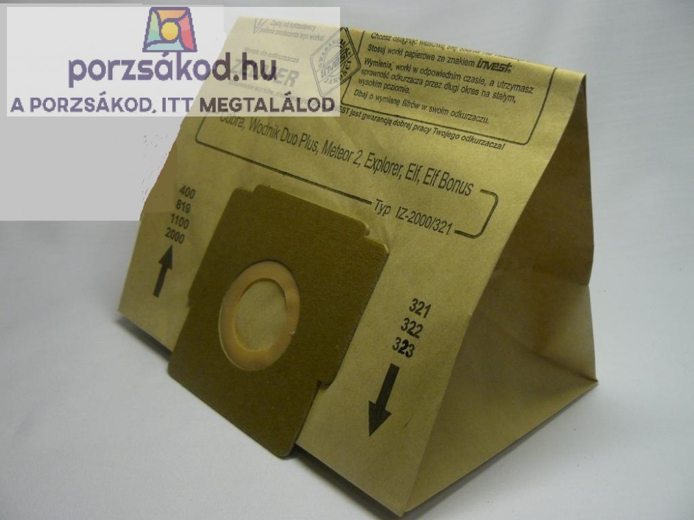 Papír porzsák, 5 darabos kiszerelésben, Zelmer Cobra kompatibilis (2000/321)